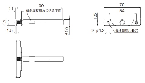 ●傾斜調整用ねじ込み平面を締めることで傾きが調整できます。
