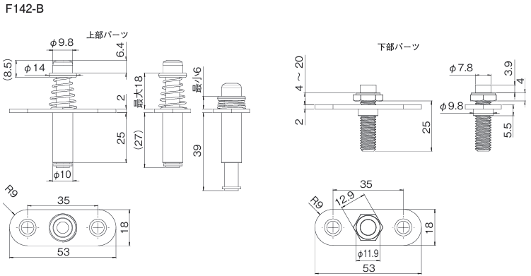 ※付属ねじ付 F142-B(皿φ 3.5 × 20 4 本)