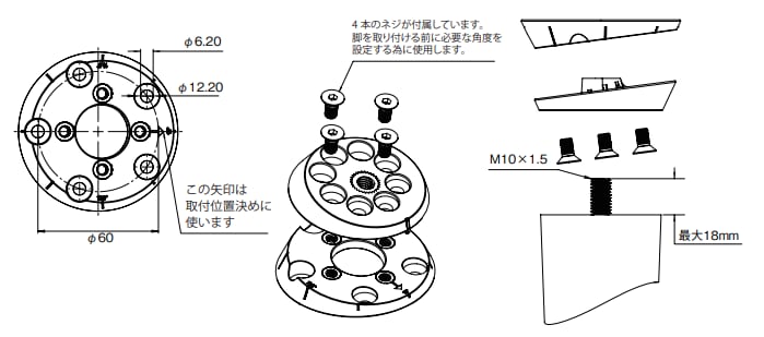 【B133 ラウンド脚金具(角度調整機能付き)-YouTube 紹介動画】