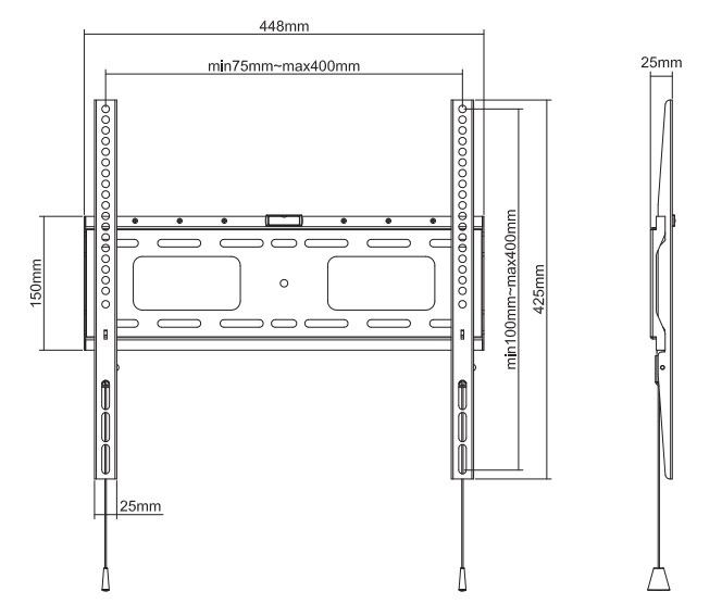 ●耐荷重50kgで75インチ程度まで取付可能です。