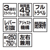 ※本品のサイズは450mmです。耐荷重は45kg/組です。